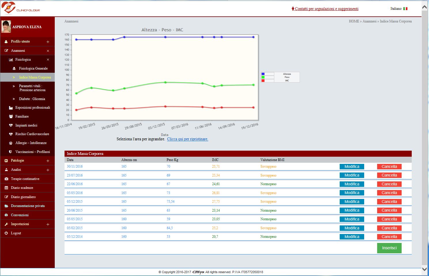 | - | dai semplici, ma fondamentali, controlli personali come il controllo dell’IMC (peso) alla misurazione della pressione e della glicemia, con visualizzazione anche grafica dei dati; |